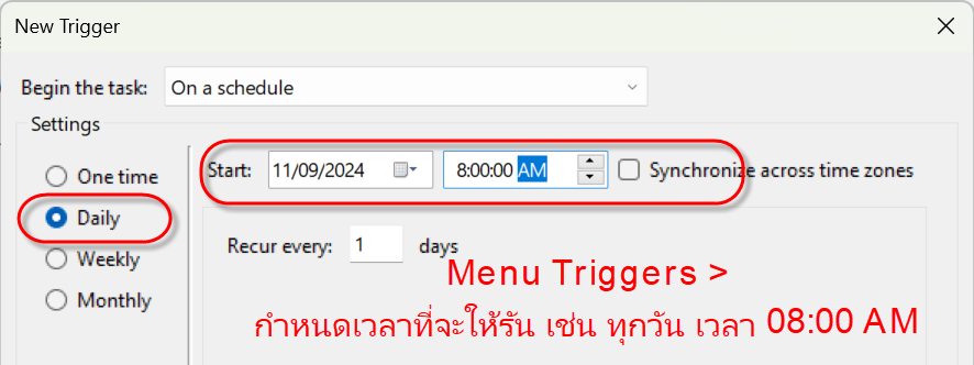 Triggers Tab: ตั้งค่าเงื่อนไขสำหรับการเริ่ม Task